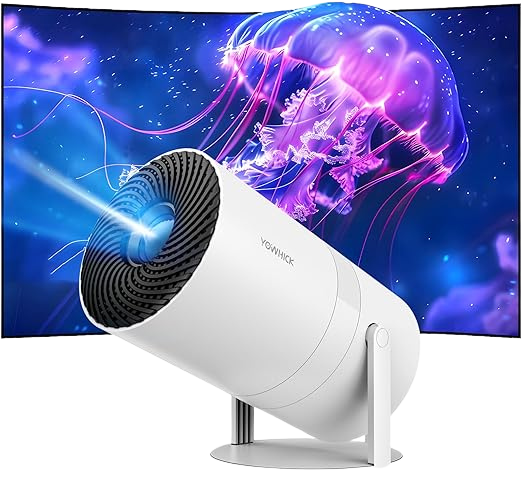 - ガチな実用ポイント: 横から見ると丸い「ホイール型」のデザイン。専用の台座の上でクルッと本体を転がすだけで、壁から天井へ一瞬で投影場所を変えられます。別売りの三脚は一切不要です。